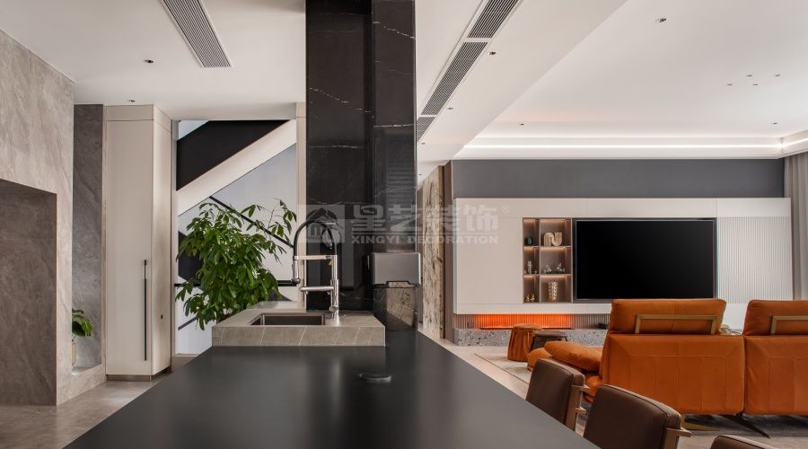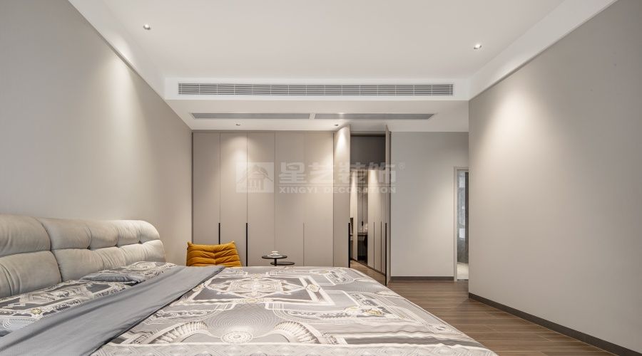 家具选型简约而富有设计感,线条流畅利落,摒弃繁琐装饰。装饰细节精心把控,少量艺术画作或绿植的点缀,增添空间的文化气息与自然生机,为居住者打造舒适且极具个性的现代简约生活空间。