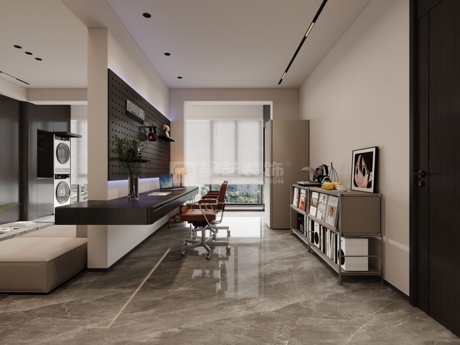 三房98平米的家,打通成开放式书房,天花做无主灯吊顶,做投影幕布,一家三口两猫,悠闲自在无拘无束。